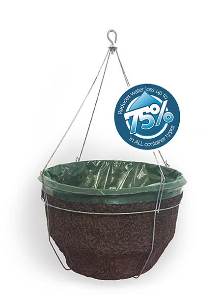 Place your Watersmart™ liner in any shape of hanging planter. Fits all planter types including moss, molded pulp, coir, plastic & more! Fill with growing mix and plant material and water accordingly.